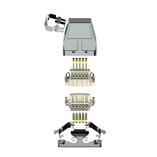 重载连接器是888腾博会科技最具特色的产品之一,其出色的防护能力,宽范围的电压/电流规格,以及既丰富又灵活的产品组合方式,特别适用于振动、粉尘、温度挑战和机械冲击等恶劣环境中。该产品具有实心铝或热塑性护罩外壳,防护等级从IP65涵盖到IP68,产品符合EN/IEC61984标准,接触导体载流量从5A到650A,触电数最多可达300个,为电力、数据和信号的传输提供了多种多样、稳定可靠的选择。